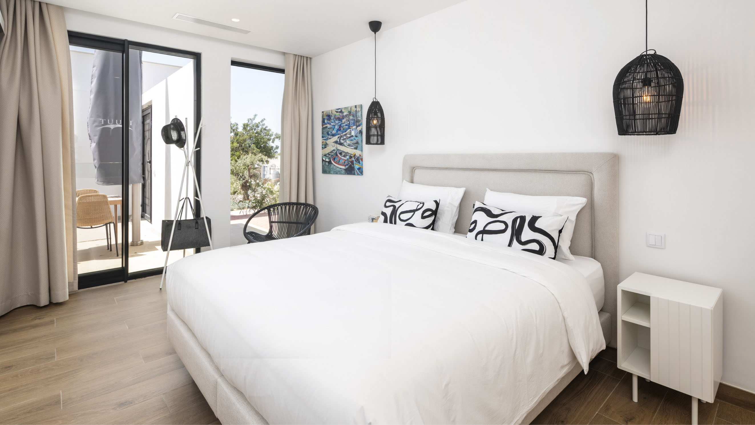 Discover an enclave of unparalleled serenity where each of our one and two-bedroom villas is designed with expansive open spaces and bathed in natural light. Step directly from your private parking to your secluded terrace - a seamless extension of your home - offering the perfect place to unwind in total privacy. Inside, fully equipped kitchens await, complete with a dishwasher, oven, and cooktop, all flowing effortlessly into beautifully appointed living areas with outdoor terraces that take advantage of the wonderful coastline views. For your comfort, air conditioning is available throughout each villa, ensuring a pleasant stay regardless of the season.