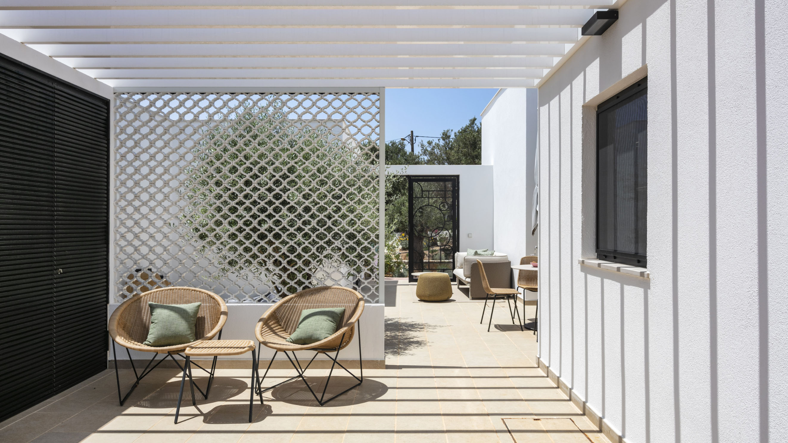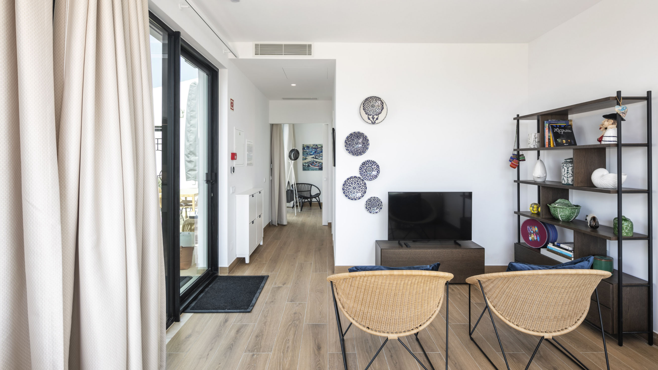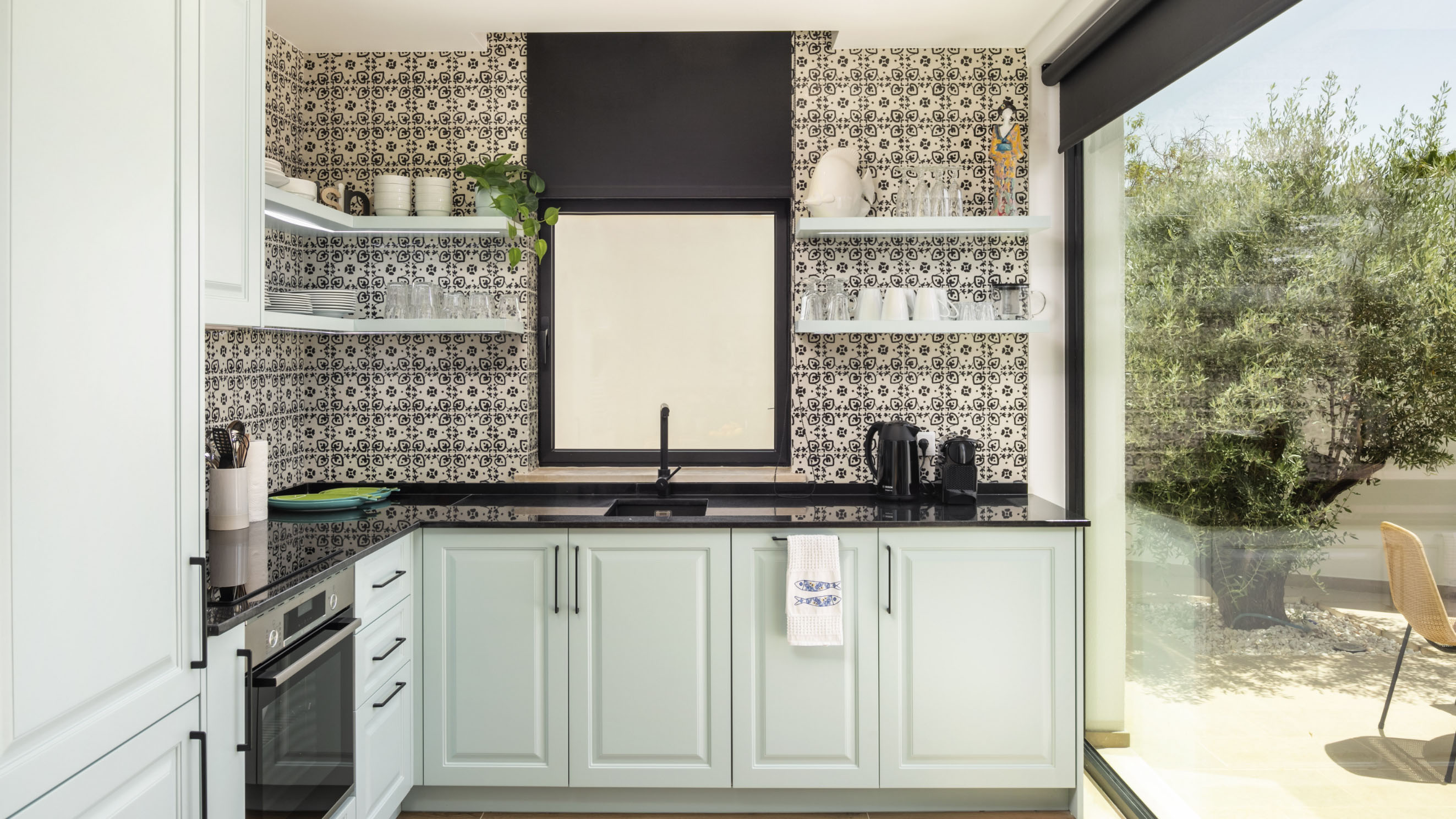 Our one-bedroom villas are thoughtfully designed to optimise elegant living spaces filled with natural light. Inside, a fully equipped kitchen with modern appliances, including a dishwasher, oven, and cooktop, flows seamlessly into a cosy living area, complemented by air conditioning throughout for your comfort. Each villa also offers private parking that leads directly to a secluded terrace, creating the perfect outdoor retreat in complete privacy. Please note that furnishings and décor may vary between apartments. Not all units are identical in layout or contents.